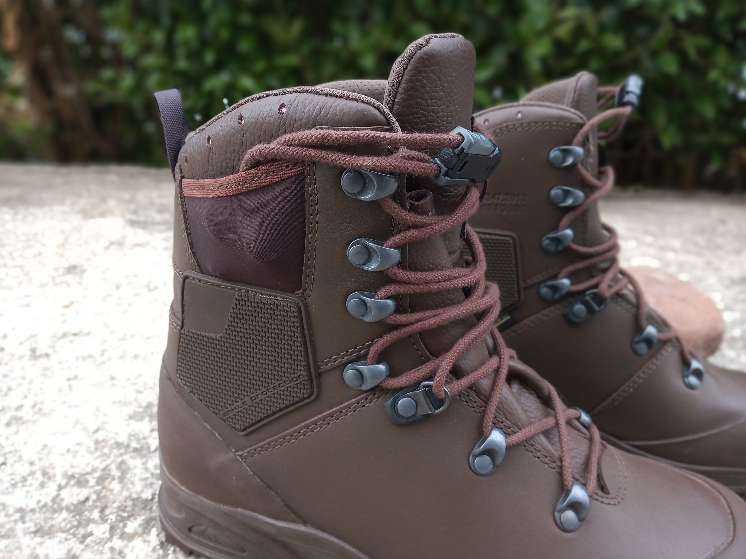 Тези ботуши са изработени от висококачествена кожа, използваща най-новите технологии. Ботушите са леко използвани, снабдени са със защита за глезена и качествени Vibram подметки , които не се хлъзгат.