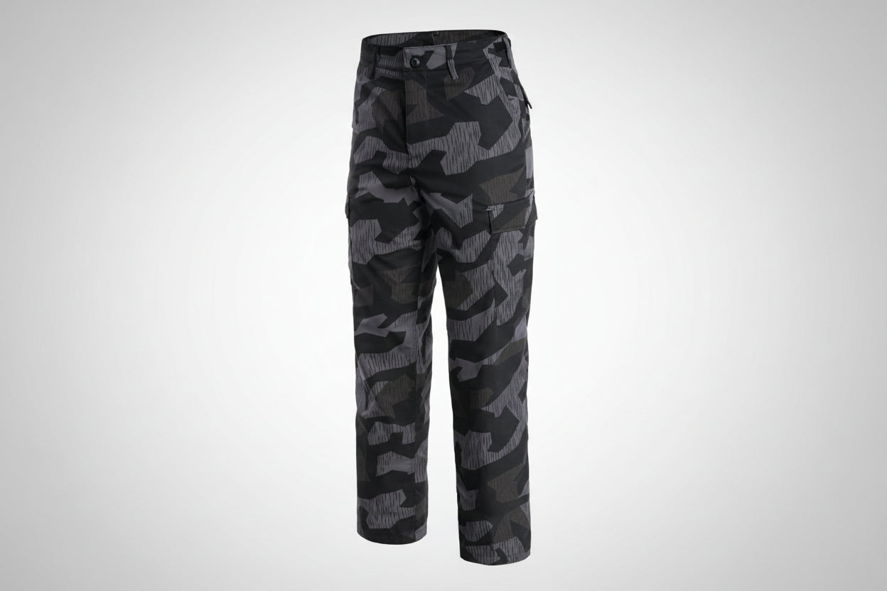 Проектирани за тежка употреба в полеви условия и за тези, които искат изчистен, агресивен тактически вид, панталоните Black Splinter Camo съчетават военна функционалност с модерна естетика. Отличителната вариация на Splinter в черно/сиви тонове предлага нисък визуален отпечатък в градска и нощна среда, без да се прави компромис с издръжливостта и ергономичността.