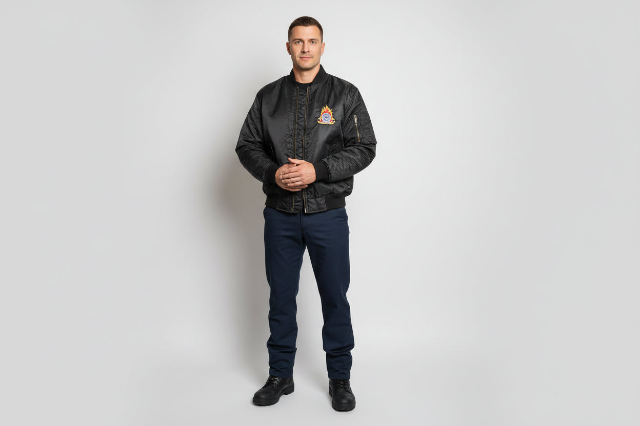 Практично летателно яке в пожарникарски стил, проектирано да отговори на реалните нужди на пожарникаря, на много ниска цена.