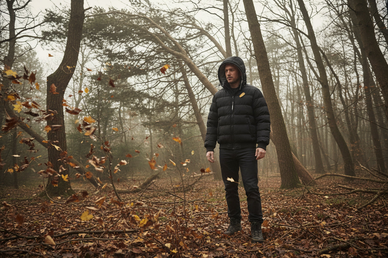 Jachetă neagră cu glugă rezistentă la vânt Dsplay